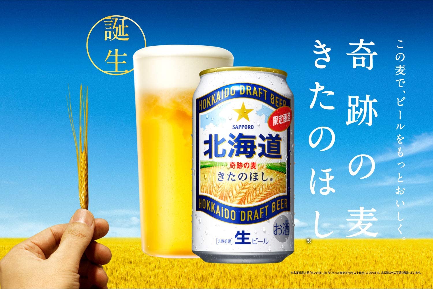 きたのほし」は、「麦でもっとビールはおいしくなる」と信じ、共同研究先の岡山大学と長年に渡って育種開発をしたLOX-1(脂質酸化酵素)を持たない北海道産大麦です。その「きたのほし」麦芽を50%以上使用した、今までにないビールです。雑味のない味わい、クリーミーな泡、素材が生み出すビール本来の美味しさが味わえます。